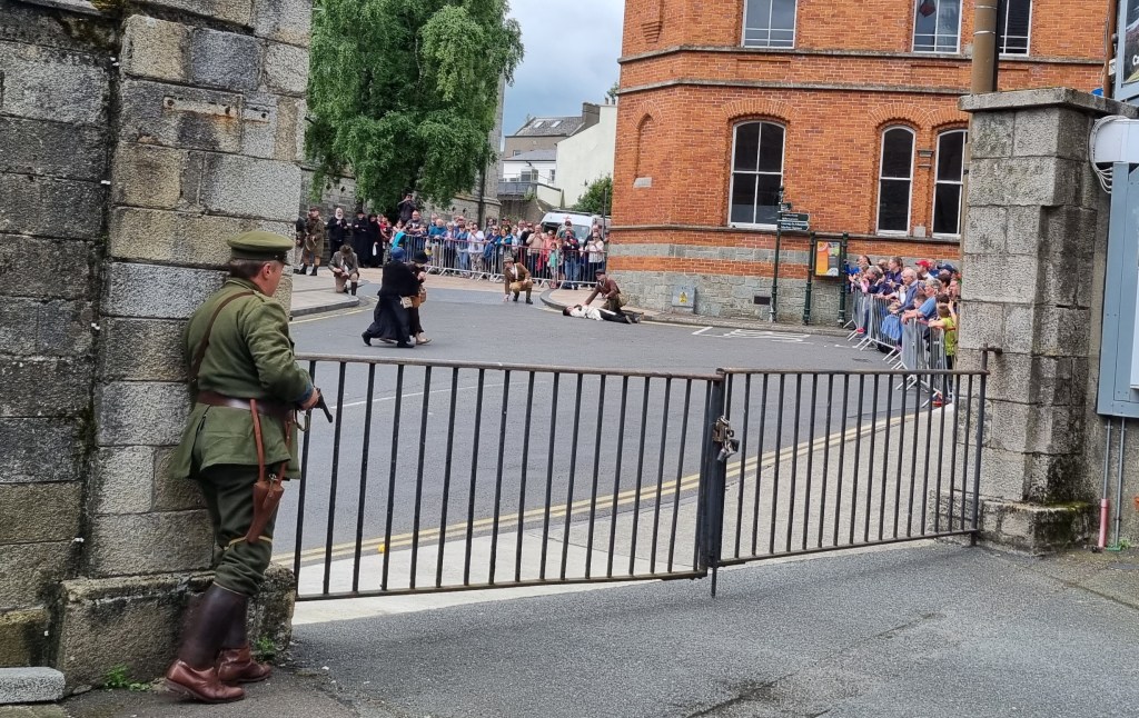 Aside from the re-enactment which featured members of Enniscorthy Re-enactment Historical Society and Lord Edwards Own with action emanating from Enniscorthy Castle pouring out onto the street, there were a number of speeches. Historian Barry Lacey acted as narrator and Maria Nolan was master of ceremonies.