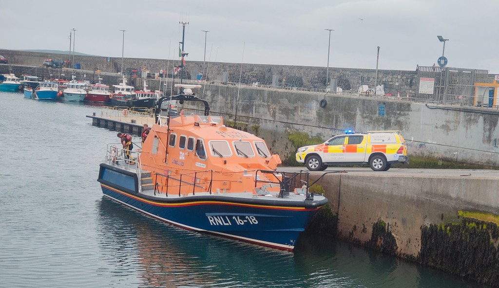 The lifeboat under Coxswain Eugene Kehoe immediately launched and made its way to the scene. Meanwhile another swimmer and a kayaker, also seeing the pair in difficulty, had made their way to the pair to lend assistance.