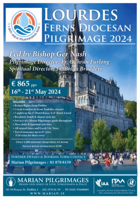 From May 16th to 21st this year many people will make the journey to Lourdes as part of the Ferns Diocesan Pilgrimage led by Bishop of Ferns, Bishop Ger Nash.