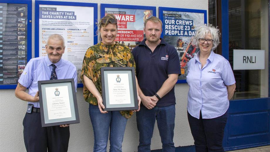 Two of Kilmore Quay RNLI’s dedicated fundraising volunteers were presented with RNLI Certificates of Thanks in recognition of their longstanding service to the charity that saves lives at sea.