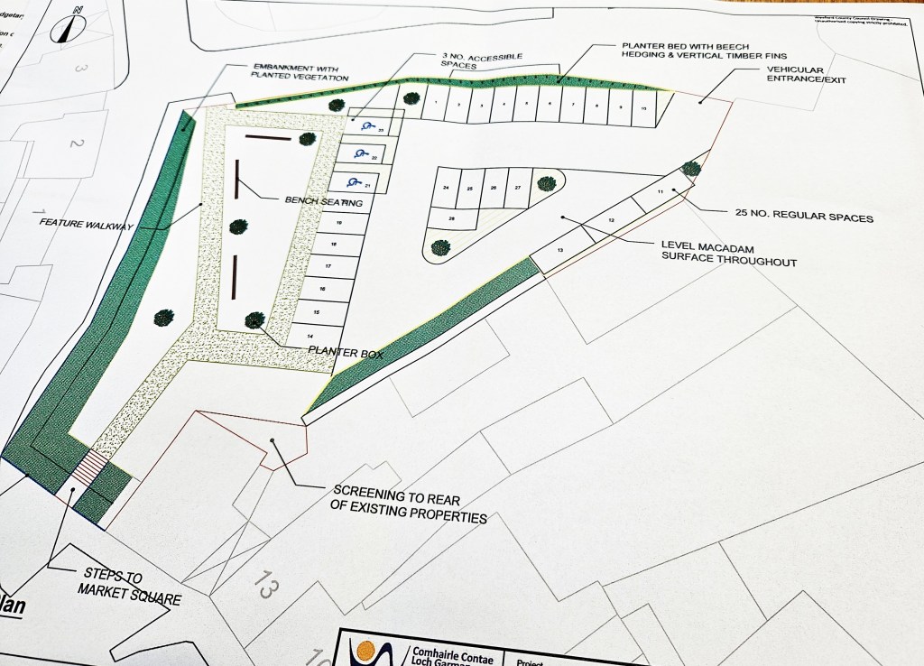 Director of Services Carolyne Godkin pointed out that “this is a temporary car park, but it could be there for a number of years.” Regards the timeline Ms Godkin said there is the removal of rubble, a contractor must be sourced, there is no issue with funding, the Part VIII has been passed, but the plan is to keep it simple and cost effective. She doesn’t expect a start before Christmas!