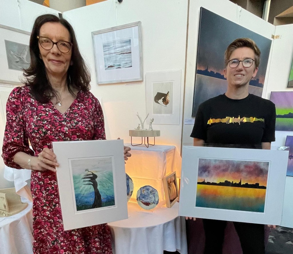 Creative cousins, artist and football referee Michelle O’Neill, and multi- disciplinary artist Jean Maskell who are exhibiting at Clayton Whites’ Art Exhibition have been bringing in the crowds with their unique creations.