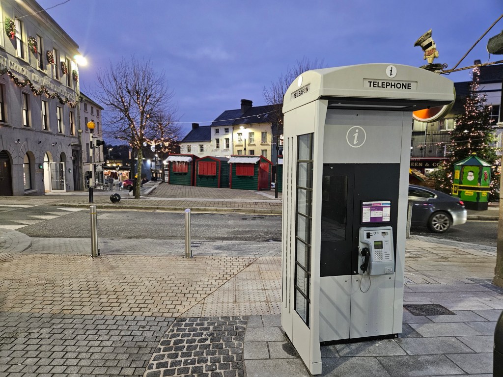 Enniscorthy has an additional structure of modern street furniture at the Market Square entrance to Rafter Street which is attracting public curiosity in the form of a public payphone.