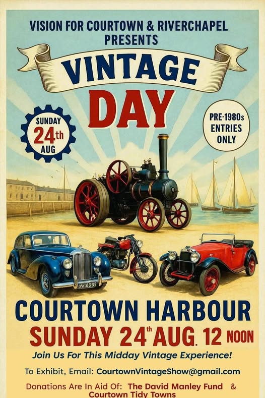 Wexford County Council has announced a temporary road closure in Courtown to accommodate the Courtown and Riverchapel Vintage Day which will take place in aid of RNLI and Courtown Tidy Towns at North Pier, Courtown.