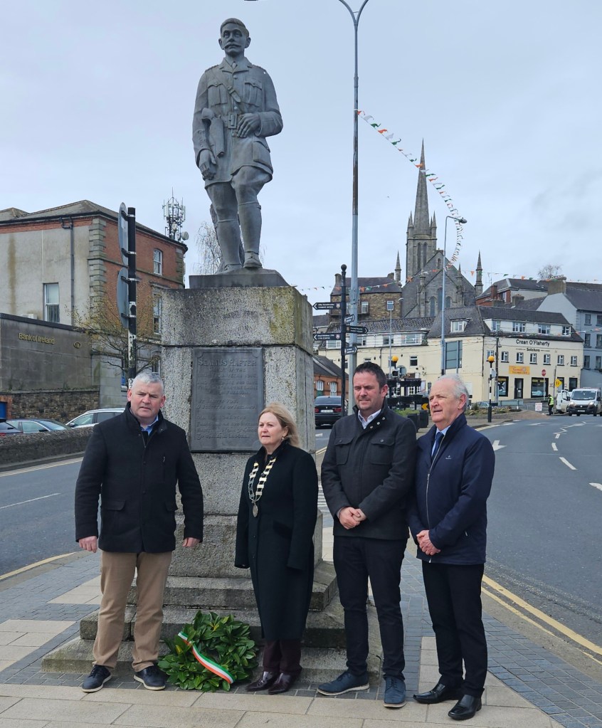 The 110th anniversary of the 1916 Rising in Enniscorthy took place this morning beginning with Mass celebrated by Fr. James Cullen in St. Aidan’s Cathedral, Enniscorthy. Wreath laying ceremonies at Market Square, the Athenaeum and the Seamus Rafter monument were amongst the highlights.